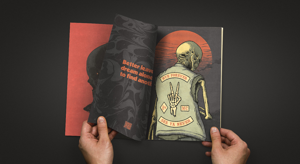 Feast your eyes upon 40 pages of vintage-inspired illustrations. This 170mm x 250mm digitally printed zine comes printed on staple-bound 55 gsm improved paper for a timeless look and feel. Each illustrated vignette is accompanied by a lyric from the song that inspired it, as well as a QR code to that song on Spotify.